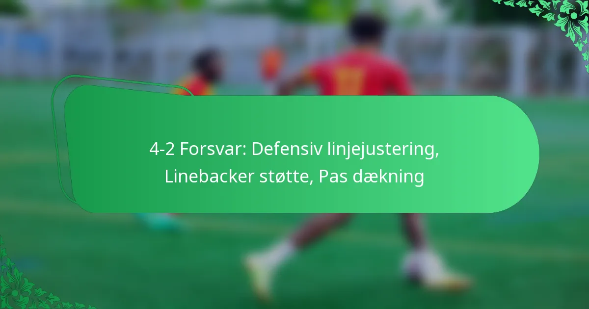4-2-forsvaret er en strategisk formation i amerikansk fodbold, der anvender fire defensive linemen og to linebackers, hvilket giver en alsidig tilgang til at modvirke både løbe- og pasningsspil. Denne opstilling styrker ikke kun den defensive front, men muliggør også effektive justeringer baseret på den offensive opsætning, hvor linebackers spiller en vigtig rolle i at opretholde defensiv integritet og støtte.