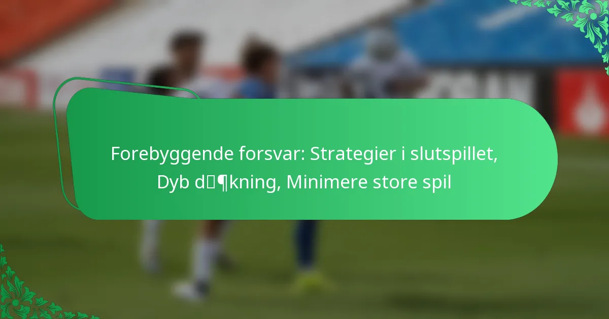 Prevent defense minimerer store spil ved at anvende dybe dækningstrategier, der prioriterer at begrænse offensive gevinster i kritiske slutspilssituationer. Denne tilgang fokuserer på at positionere forsvarsspillere dybere på banen for at afskrække lange afleveringer og opretholde situationsbevidsthed.