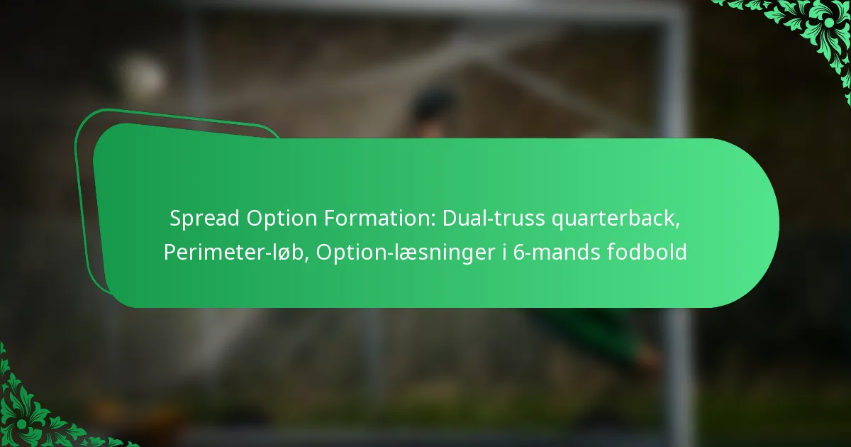 Spread option formation i 6-mands fodbold er en strategisk offensiv tilgang, der udnytter en dual-threat quarterback for at maksimere offensiv alsidighed. Denne formation lægger vægt på perimeter-løb og option-læsninger, hvilket muliggør dynamiske spilmuligheder på banen.