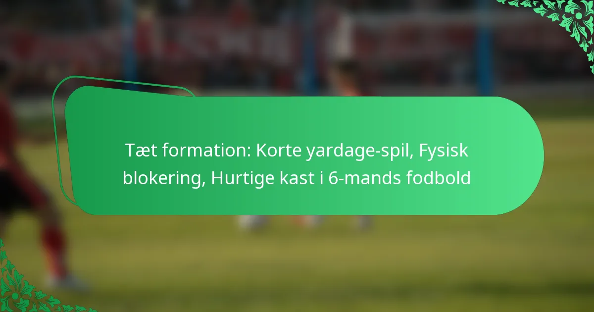 En tight formation i 6-mands fodbold er en strategisk opstilling, hvor spillerne er placeret tæt sammen, typisk med stærk fokus på fysisk blokering og hurtige pasningsspil. Denne opsætning er designet til at skabe muligheder for kort afstand og maksimere effektiviteten af angrebet i trange rum.